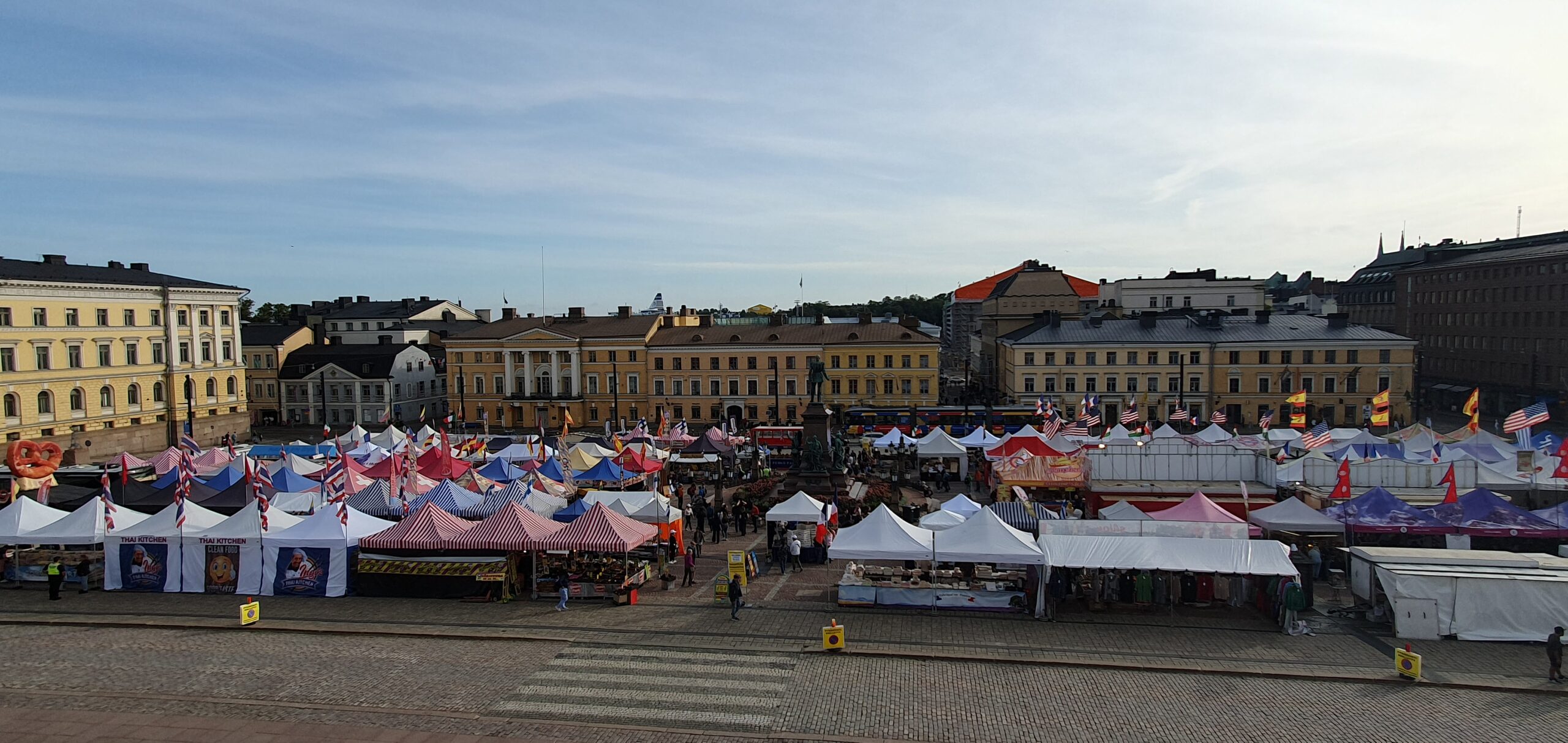 Nach einer ruhigen Nacht kamen wir pünktlichst nach fast 14 Stunden Fahrt in Helsinki an. Der Schaffner ging kurz vor Ankunft durch und erklärte uns wie das mit der Autoabholung funktioniert. Alles total super und einfach. Der Zug hatte nie, nicht mal eine Minute Verspätung! Liebe Deutsche Bahn und ÖBB, nehmt euch ein Beispiel!! Erste Station in der Großstadt war Sealife, aber bei 4,10 Euro Parkgebühr pro Stunde entschlossen wir zuerst ein Prisma Shoppingcenter aufzusuchen und dort uns ein Mittagessen zu gönnen. Nein, diesmal kein Sushi, sondern Indisch 😊. Anschließend fuhren wir zur Unterkunft. Der Bus steht in der Tiefgarage und die kostet nur 10 Euro pro Tag. Wir wohnen diesmal in einem Hostel. Der Grund dafür war einerseits die super Lage in der Innenstadt und andererseits die sehr günstige Parkmöglichkeit. Nach dem Check-in, Zimmer befindet sich im neunten Stock, gingen wir mal Richtung Innenstadt und Dom, dem wohl bekanntesten Wahrzeichen der Stadt. Leider ist der Dom und auch ziemlich der Rest der Stadt Baustelle. Am Platz vor dem Dom fand ein internationaler „Grand Market“ statt, wo es Essen und Verschiedenes aus vielen Ländern gab. Wir schlenderten durch die Massen und noch ein Stück weiter zum Hafen und seiner Umgebung. Nach unserer Rückkehr ins Zimmer genossen wir noch den Ausblick über Helsinki bei Nacht.