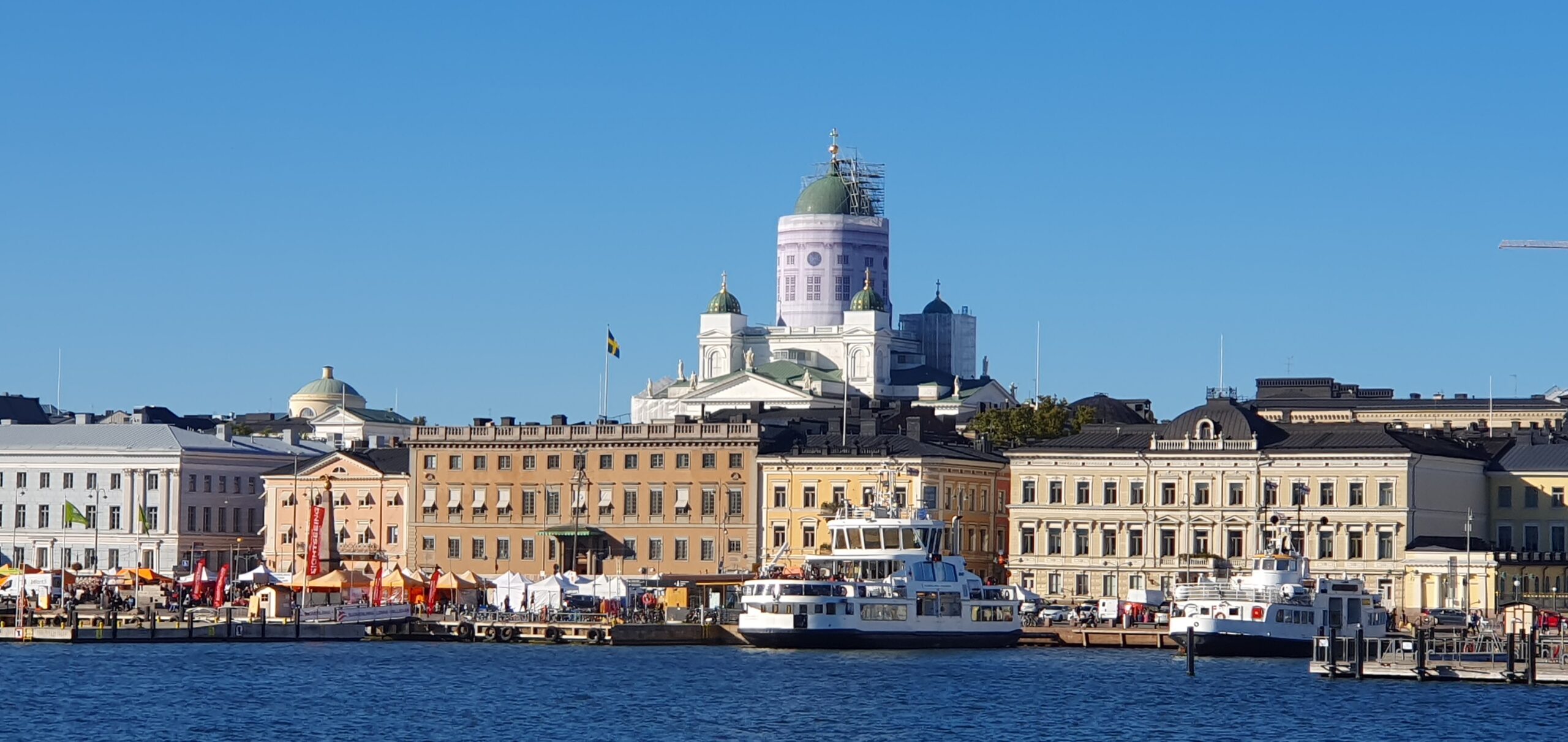 Heute war der letzte ganze Tag in der florierenden Hauptstadt von Suomi. Am Morgen waren in der Ferne Wolken zu sehen und es war auch ziemlich frisch, tagsüber aber war der Himmel wieder fast wolkenlos und ein traumhaft letzter Tag in der finnischen Metropole. Unsere Route führte uns heute, neben vielen noch unbekannten Sehenswürdigkeiten, unter anderem ins Museum der „Bank of Finland“ (Nationalbank von Finnland). Die kleine Ausstellung zeigte bei kostenlosem Eintritt viele interessante Objekte zum Thema Geld und Euro. Es gab auch alte Schilling Banknoten von 5000 abwärts zu sehen. Die Verbindung liegt im Gestalter der Euro Banknoten, der auch die Schilling Banknoten entworfen hatte. Anschließend haben wir die größte Orthodoxe Kirche Finnlands von außen bewundert, dann eine Runde im Riesenrad am Hafen gedreht, anschließend noch auf die Festungsinsel vor der Stadt mit dem öffentlichen Fährschiff gefahren. Nach der Rückkehr fuhren wir noch ein paar Straßenbahnstationen rund um die Innenstadt und machten es uns dann schon nach Sonnenuntergang, nach vielen Kilometern zu Fuß, im Zimmer gemütlich. Es war ein herrlich letzter Tag, nein, es waren wunderschöne Tage in Helsinki. Und ja, die Stadt bekommt von mir die absolute Reiseempfehlung! 😊